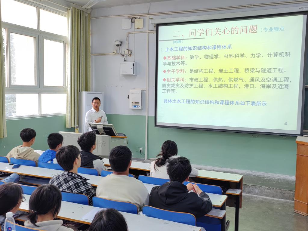 2023年10月19日上午,土木工程系在教二—T5教室开展了2023级土木工程专业新生入学教育活动,公司党委副书记冀鹏、土木工程系系主任高春华、教师代表王述超及2023级土木工程专业全体新生参加了本次活动,活动由高春华主持。