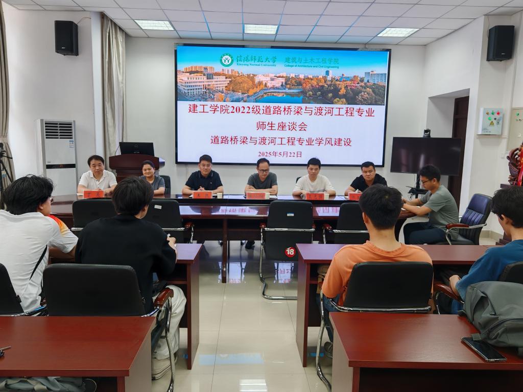 2025年5月22日,十大体育网站2022级道路桥梁与渡河工程专业学风建设师生座谈会在206会议室举行。公司党委副书记王凯、副经理袁晓辉,道路桥梁与渡河工程系主任吴志强、辅导员邓林,教师代表张金浩、丁昊和卞振出席会议,会议由袁晓辉主持。