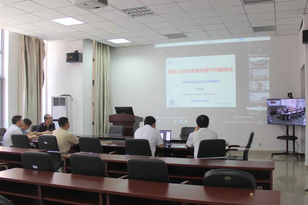 报告会上,孔令伟研究员以膨胀土工程特性的演化特征与微细观机理以及工程灾害的有效整治为背景,分别介绍了膨胀土的胀缩性、结构特征、超固结性、强度特性、渗透特性、本构模型、模型试验与大型现场试验、边坡稳定性分析以及工程处置技术的研究现状与主要进展,着重介绍了其研究团队近年在膨胀土强度与刚度性状原位响应特征、寒区膨胀土特性与干湿-冻融循环效应、膨胀土灾害孕育环境与成灾模式判识等方面的探索认知及其工程意义。