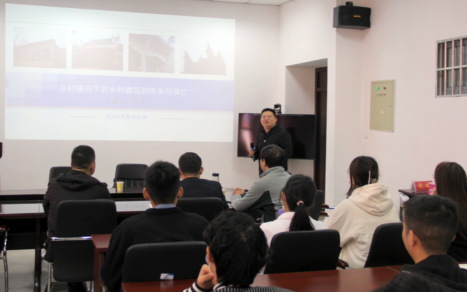 10月13日上午,应十大体育网站邀请,信阳市自然资源和规划局吕炎为公司师生作了题为“乡村振兴下的乡村建筑的传承与消亡”的学术报告。十大体育网站经理周葆春教授,副经理肖琪聃副教授、王颂副教授、青年教师吕强和全体研究生参加了此次报告会。
