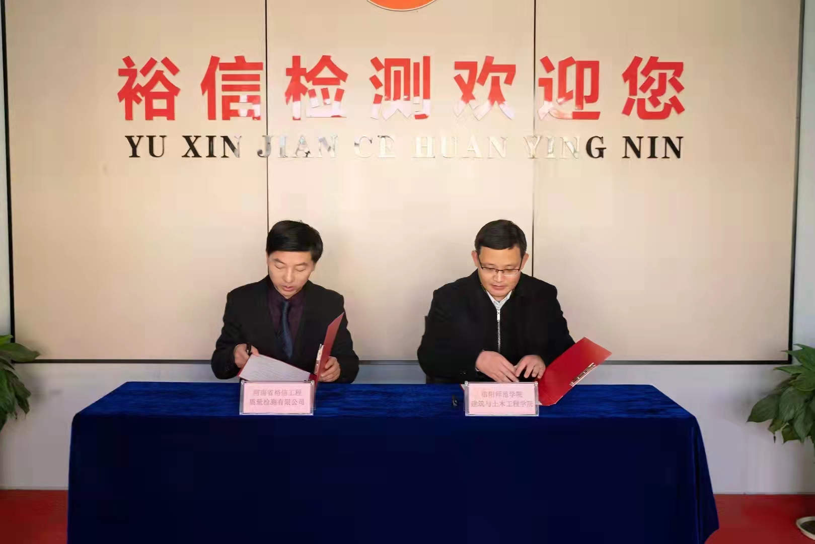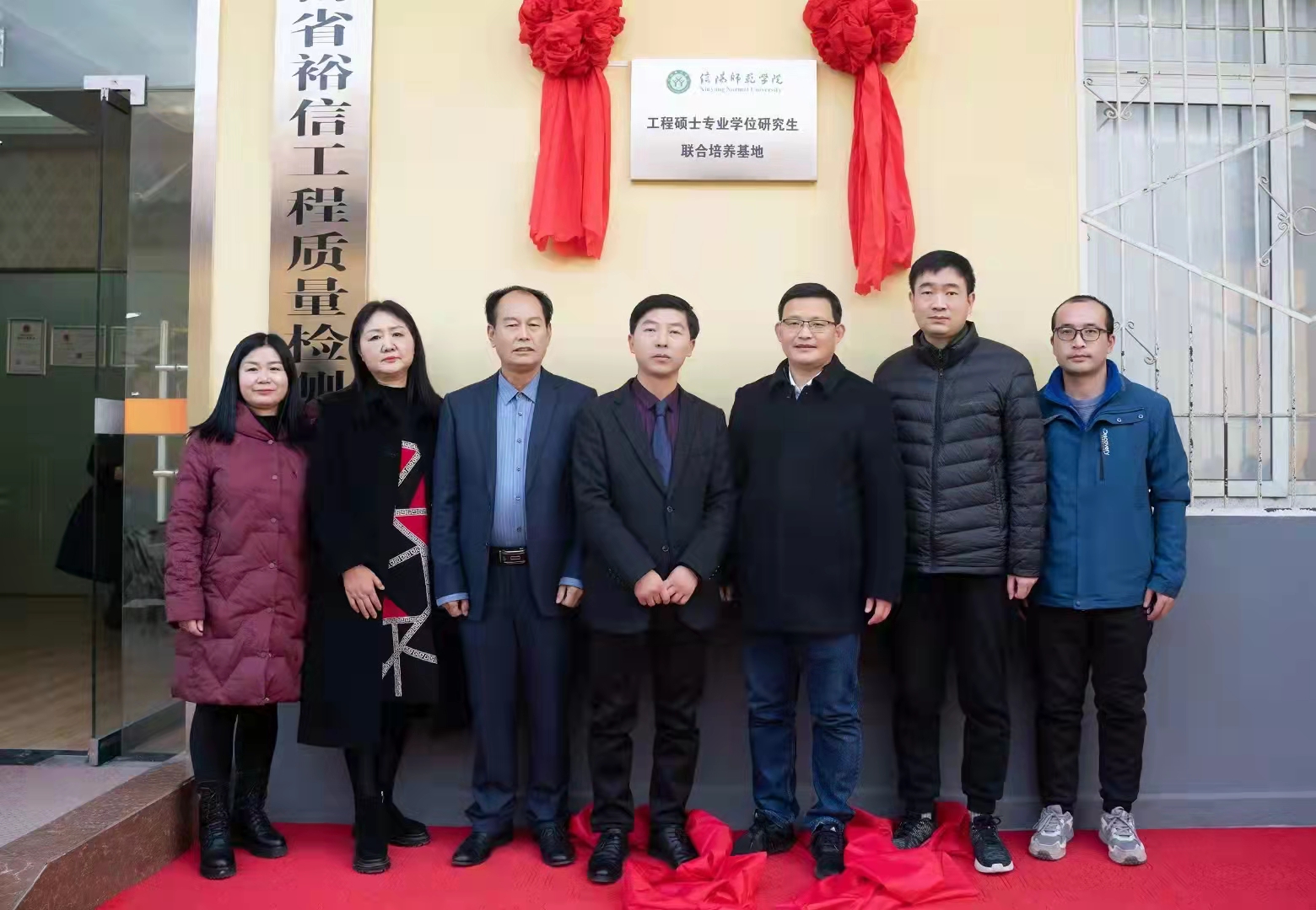 1月11日下午,​十大体育网站工程硕士专业学位研究生联合培养基地签约暨揭牌仪式在河南省裕信工程质量检测有限公司举行。