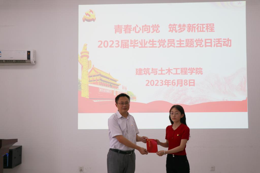 “我志愿加入中国共产党,拥护党的纲领,遵守党的章程……”全体毕业生党员在冀鹏的带领下,面向鲜红的党旗,重温入党誓词,再次向党作出庄严承诺,坚守入党初心,牢记使命担当。