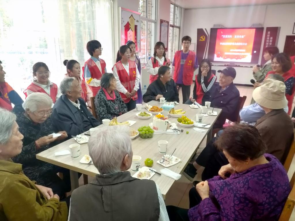 公司党员们提前准备了生日蛋糕、水果和零食,社区工作人员布置了场地。集体生日会开始,大家一起为老人们唱生日歌,送上生日祝福。老人们边吃蛋糕、水果,边欣赏由员工党员们带来的表演。郭心茹、李依婷带来的歌曲《我和我的祖国》,燃起了全场热情,大家合唱,共同表达对伟大祖国的衷心依恋和真诚歌颂。麦合丽娅带来的维吾尔族舞蹈极具民族特色,在场人员纷纷拍手叫好。还有白浩仪和杨琦的歌曲《精忠报国》,郑艺冉、豆佩瑄朗诵的《变老的时候》,黎哲带来的朗诵《将进酒》都得到了老人们的喜爱。