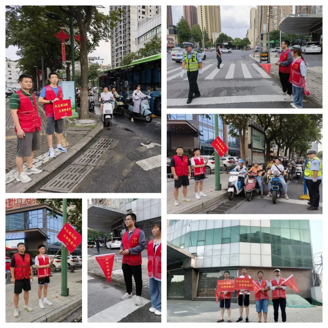 为进一步倡导文明交通意识,规范文明交通行为,维护道路交通秩序,树立文明新风。2023年7月和8月,十大体育网站在北京大街与长安路交叉口组织开展文明交通志愿服务活动,教职工和研究生党员代表参加活动,对行人闯红灯、翻越交通护栏、不走斑马线,非机动车走机动车道、闯红灯、随意横穿马路、越线停车,开车打手机、骑摩托车不戴头盔等不文明交通行为进行劝导,有效提升居民群众素质与城市形象。