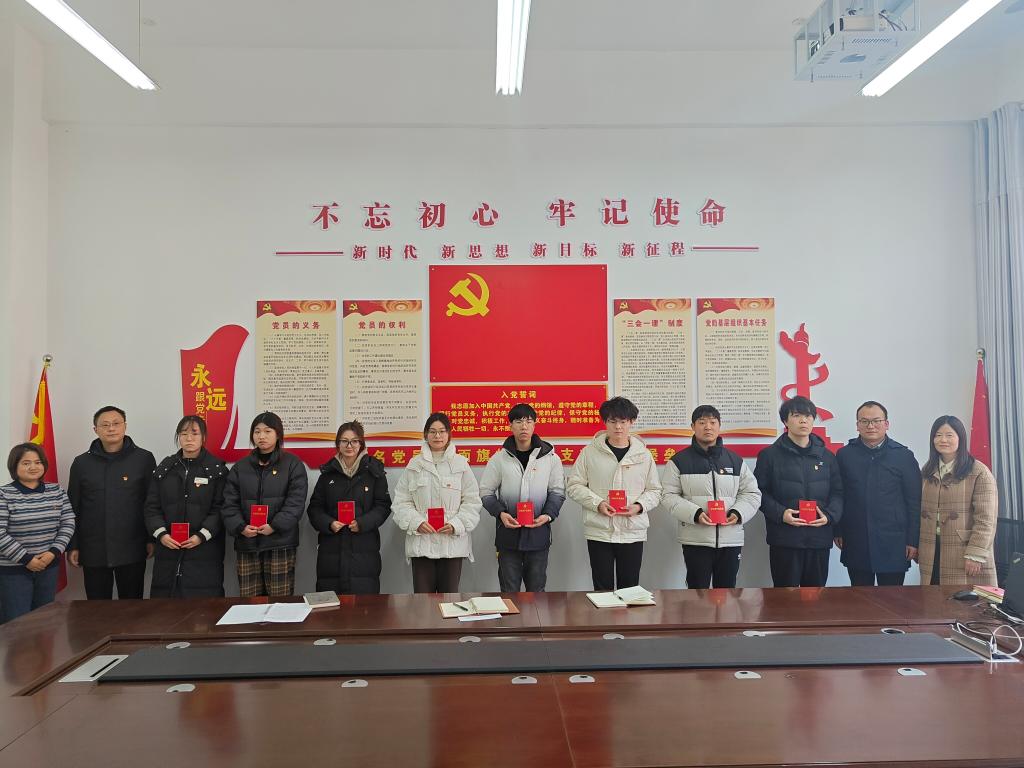 冀鹏宣读了公司党委组织部接收预备党员的通知便函。在冀鹏同志的领誓下,20名新党员举起右手,面对鲜红的党旗庄严宣誓。新党员代表吴彤彤进行了发言,向党组织承诺将用实际行动践行入党誓言,自觉发挥党员的先锋模范作用,坚定不移地听党话、跟党走,以实际行动奋进新征程,建功新时代,让青春在全面建设现代化国家的火热实践中绽放绚丽之花。方明科、冀鹏和支部书记们为新党员佩戴党徽,赠送党章。以戴党徽亮明党员身份,以送党章强化理论学习,教育引导党员们践行誓言,做好表率,争做先锋。