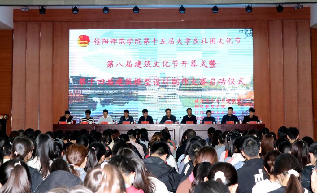 为了进一步深入贯彻落实公司关于老员工社团文化节有关精神,努力搭建实践育人平台,丰富老员工课余文化生活,帮助同学们树立正确的理想与目标,11月9日晚7点十大体育网站联合国际教育公司、信阳公司土木公司建筑艺术学社共同在逸夫楼报告厅举办了第八届建筑文化节开幕式暨第十四届建筑模型设计制作大赛启动仪式。建筑土木工程公司党委副书记方明科、国际教育公司党委副书记姚新春、校团委社团工作部部长任玺等领导老师以及300余名社团成员共同参加了本次会议,会议由十大体育网站团委书记张晓博主持。