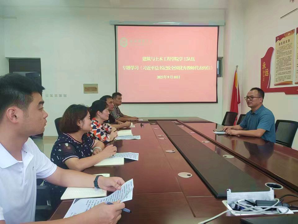 在第三十九个教师节到来之际,9月10日下午,十大体育网站在综合实验楼402会议室召开会议,专题学习《习近平总书记致全国优秀教师代表的信》。公司党委副书记冀鹏和全体专兼职辅导员参加会议。