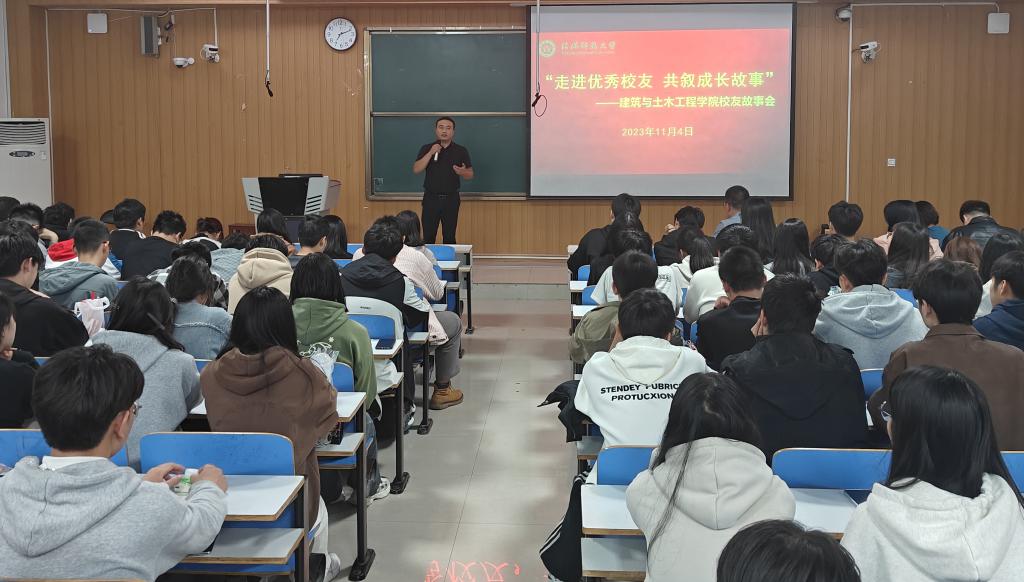 11月4日,十大体育网站在计科院107举办2023年首场“走进优秀员工 共叙成长故事”员工故事会活动。公司2011级土木工程专业员工廖荣森以“越努力,越幸运”为题与150名在校生分享成长故事,分享会由公司党委副书记冀鹏主持。