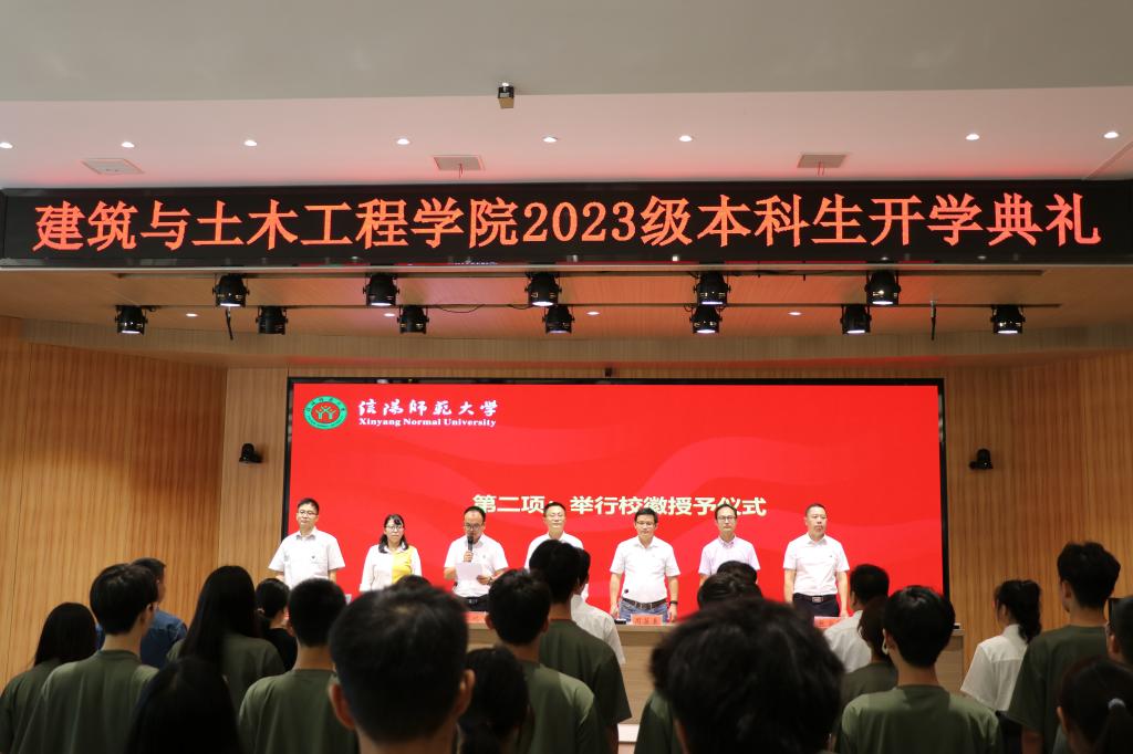 “同学们,从戴上校徽的这一刻开始,我们将共有师大人的身份,共担师大人的使命,共赴师大人的荣光”。典礼上,举行了校徽授予仪式。与会领导、老师为2023级新生授予并佩戴校徽,激励同学们将师大精神铭记于心,厚植爱校荣校情怀,牢记“厚德崇实、善学敏行”的校训精神,不忘初心,砥砺前行,使命在肩,奋斗有我。