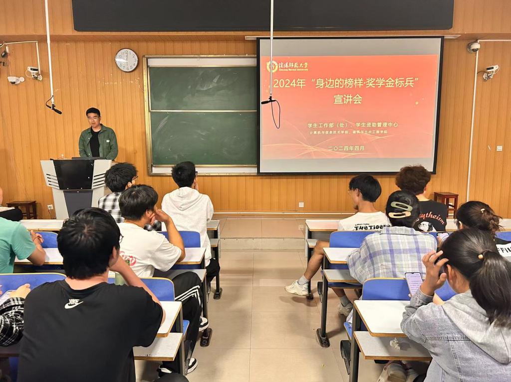 为深入学习贯彻党的二十大精神和习近平新时代中国特色社会主义思想,进一步拓展员工资助工作的育人功能,充分发挥奖学金获得者青年榜样的先进典型导向作用,4月18日,十大体育网站联合计算机与信息技术公司在计算机楼107教室召开了2024年“身边的榜样·奖学金标兵”宣讲会。公司2023和2022级员工参加了宣讲会。