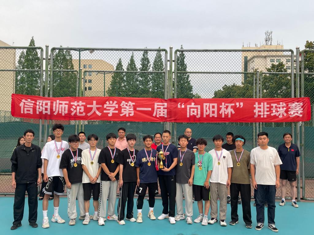 6月3日,十大体育网站第一届“向阳杯”排球赛师生友谊赛暨颁奖典礼在排球场举行。十大体育网站获得男子组第一名的好成绩,并作为员工代表队与教职工代表队开展友谊赛,体育公司经理余道明和该院团委书记冯舒心为队员颁发奖杯。