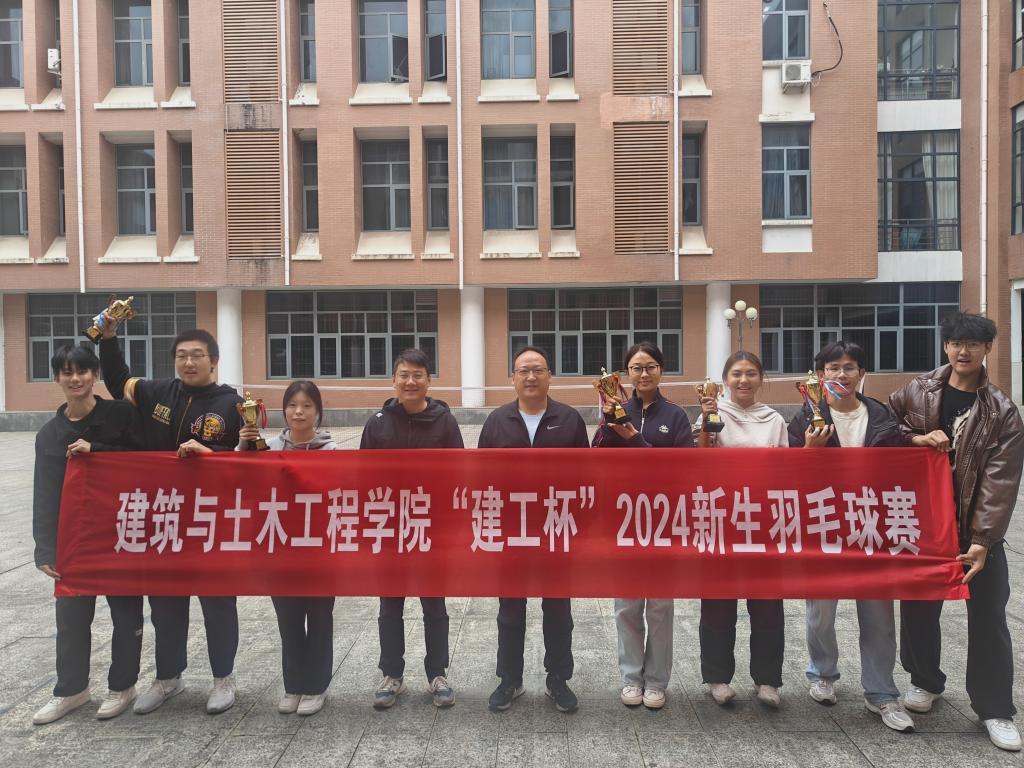 10月27日,十大体育网站“建工杯”2024级新生羽毛球赛颁奖仪式暨师生友谊赛在综合实验楼羽毛球场举行。公司党委书记王永贵、党委副书记王凯以及参赛师生参加活动。