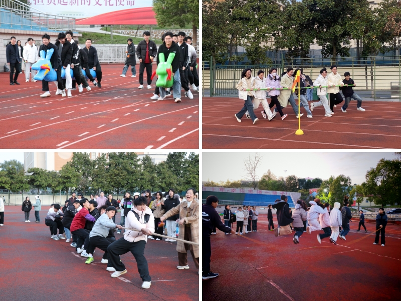 活动伊始,王凯发表了热情洋溢的讲话,鼓励同学们在比赛中团结协作,挑战自我,展现建工学子的青春风采。随后,趣味运动会正式拉开帷幕,一系列精彩纷呈的比赛项目依次展开。旱地龙舟项目中,同学们化身龙舟健儿,齐心协力,在操场上划出一道道优美的弧线,展现了团队的力量与默契。无敌旋风跑则考验了同学们的速度与协作能力,他们像旋风一样在跑道上飞驰,现场气氛热烈非凡。拔河比赛更是将活动推向了高潮,双方队员紧握长绳,咬紧牙关,拼尽全力,场边的加油声、欢呼声此起彼伏,将比赛氛围烘托得异常紧张而激烈。此外,多人跳绳、背靠背、投壶等趣味项目也各具特色,吸引了众多同学积极参与。