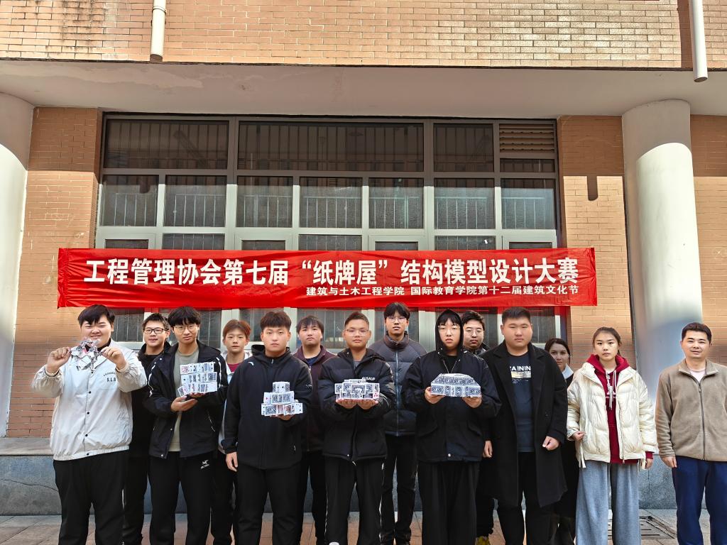 12月1日上午,十大体育网站在综合实验楼小广场举办第七届“纸牌屋”结构模型设计大赛。工程管理协会指导老师吴志强、社团部分员工以及参赛选手参加活动。