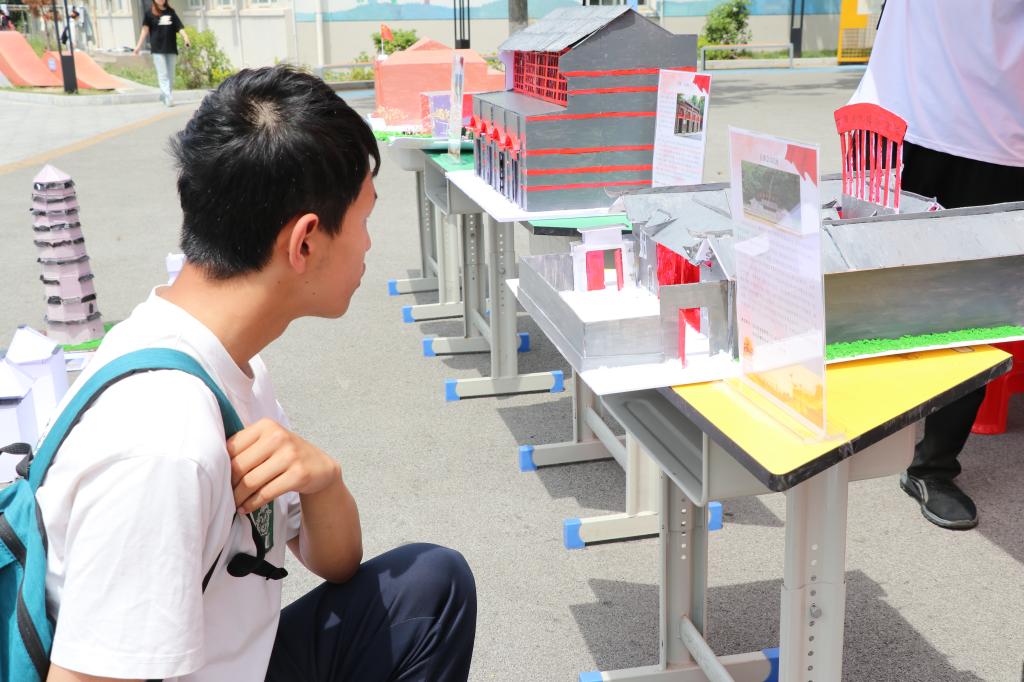 活动当天,这10余座制作精美的建筑模型在心语广场错落有致地陈列展示,还配以图文并茂的展板,全方位呈现红色建筑的相关信息。员工讲解员们围绕每座建筑的历史背景、独特的建筑特色以及深刻的革命意义,为参观者进行了细致的导览讲解,生动地还原了建筑背后的党史故事,让参观者仿佛置身于那段波澜壮阔的历史岁月。在活动现场,同学们还围绕“传承红色基因,争做时代先锋”这一主题,结合自身的学习和生活实际,积极分享了对五四精神的理解与感悟,以及在新时代如何将个人成长与国家发展紧密结合的思考。