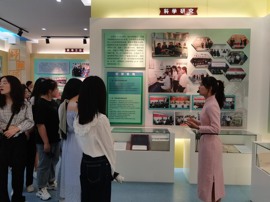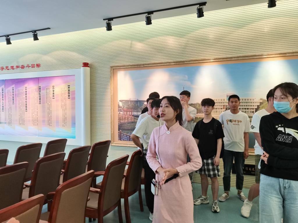 在讲解员的带领下,参观从刻有“教师之摇篮”的巨型浮雕前开始。讲解员结合文史资料和照片,生动讲解了公司建校以来,特别是近四十年来的发展历程、办学理念和办学成果。在一座座奖杯,一张张证书面前,同学们更加深刻得了解到公司在科学研究、精神文明建设等方面取得的成果。员工风采的展示激励着同学们向先进学习,扬帆万里,勇攀高峰,争做勇担当,敢作为的社会主义新青年。最后,参观在悠扬的琴音和优雅的茶艺表演中结束。