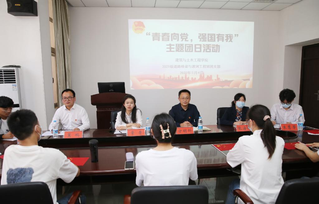 5月4日下午,2021级道路桥梁与渡河工程班团支部“青春向党 强国有我”主题团日活动在综合实验楼206会议室举行。校团委副书记常青、公司党委书记方明科、党委副书记冀鹏和共青团员代表共40余人参加活动。活动由班级团支书赵琦琦主持。